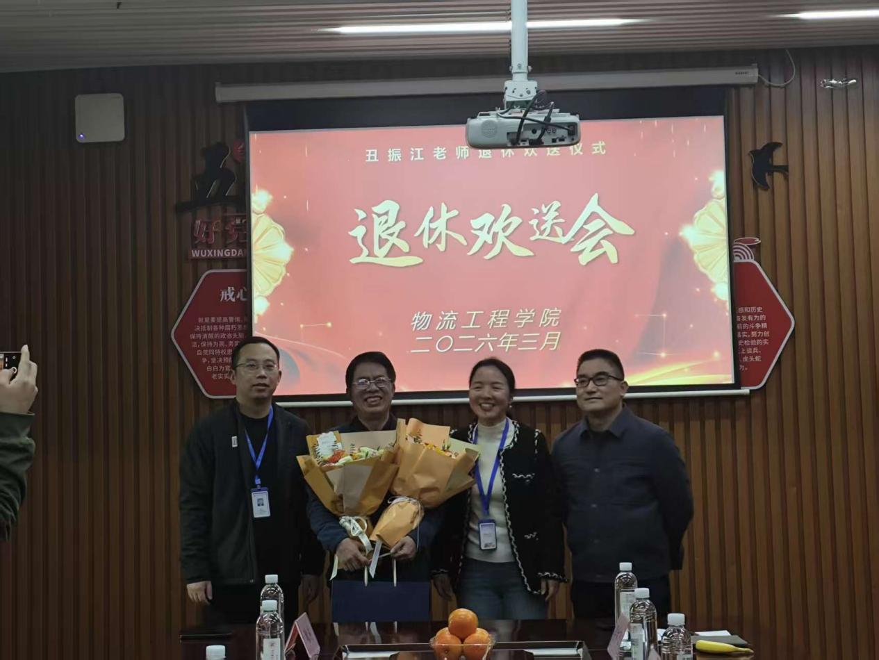 3月24日上午,物流工程学院为从教二十余载的丑振江老师举行荣退仪式。学院院长杜丽茶、党总支书记傅向东、离退休办主任刘建辉、副院长沈治国、党总支副书记梁林飞及物工院教师代表齐聚一堂,共同回顾丑振江老师立德树人的教育生涯,致敬他为教育事业倾注的深厚热忱与无私奉献。